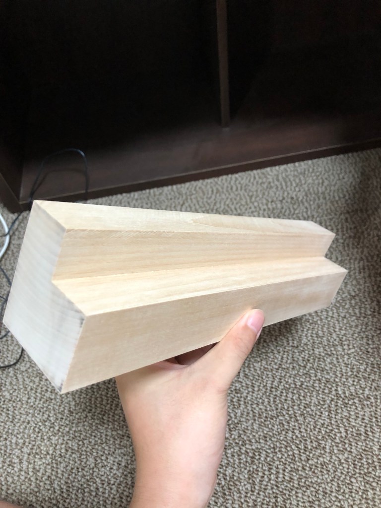 こうして切ってもらった角材のL字カットした部分を使い、デスクに魔法をかけます(笑)